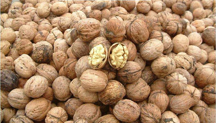 脫青皮后8小時內(nèi)入倉上架排濕烘烤,排濕溫度35-40℃,烘烤時間12-15小時,果殼表面水分散失,顏色由黑褐轉(zhuǎn)為褐色時排濕結(jié)束。